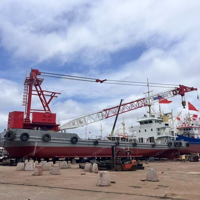 La grúa de muelle flotante OUCO de 45M está diseñada específicamente para operaciones de dragado, soportando una gama de equipos como martillos de hinca de pilotes, accesorios de bombas de dragado y cubos de manipulación de materiales. Permite la extracción eficiente de sedimentos, la construcción de rompeolas, trabajos de cimentación de muelles y la restauración costera, lo que la convierte en una herramienta esencial para puertos, ríos y contratistas de dragado en alta mar que necesitan elevación confiable en el agua.